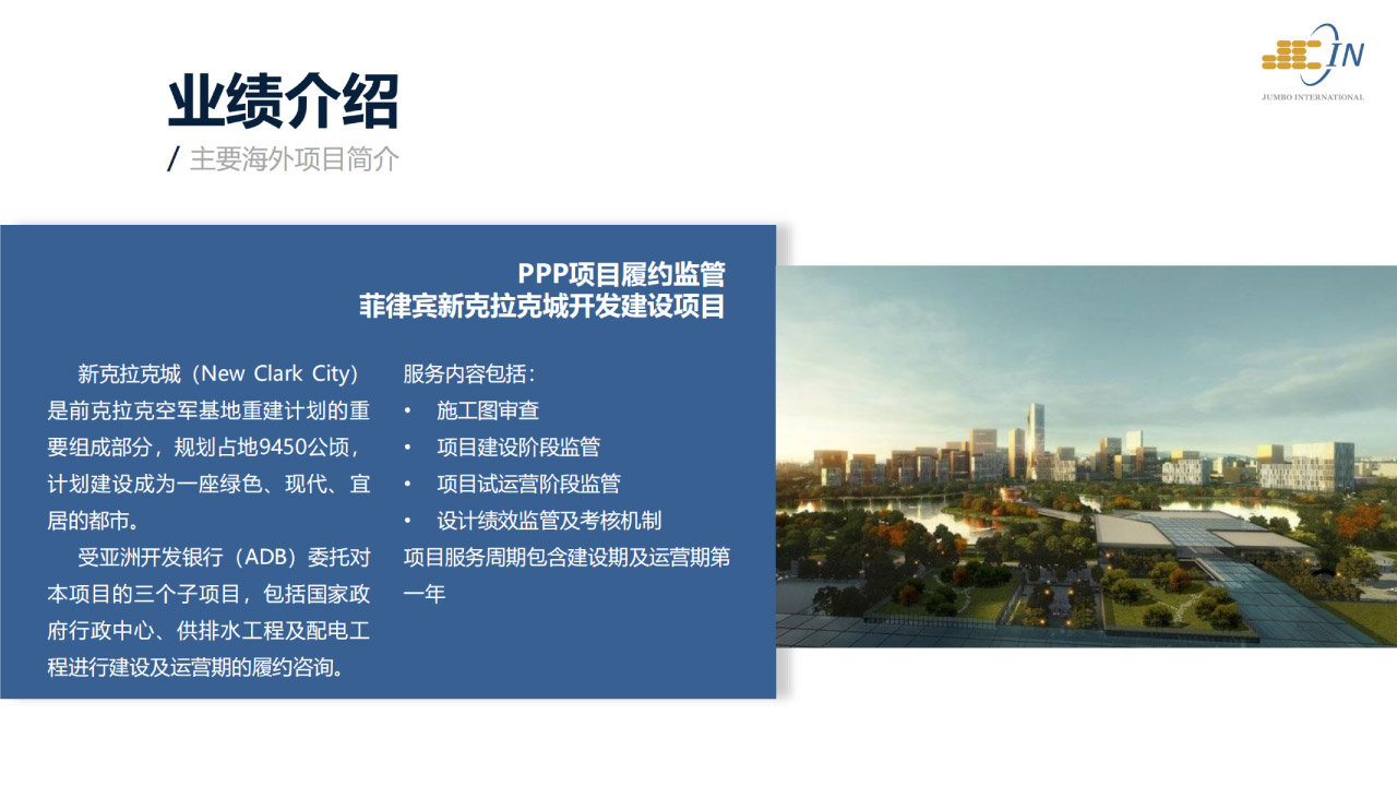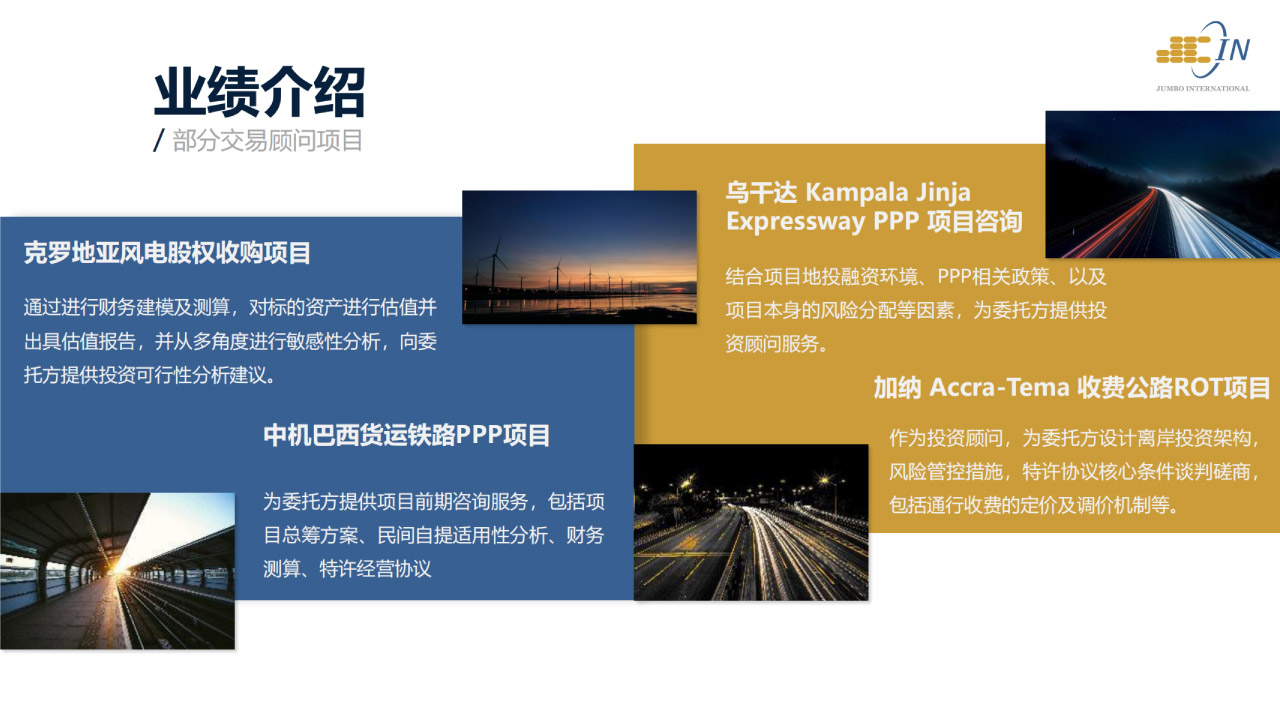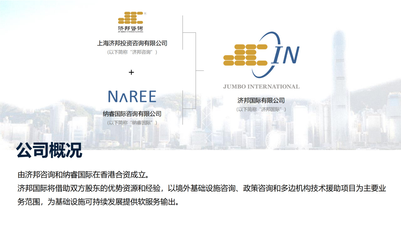 上海濟(jì)邦投資咨詢有限公司 (“濟(jì)邦咨詢”或“濟(jì)邦”) 是一家提供綜合性專業(yè)服務(wù)的基建咨詢機(jī)構(gòu)。 自2002年成立以來, 濟(jì)邦為基礎(chǔ)設(shè)施相關(guān)的各級政府、 投資運(yùn)營商、 工程承包商、 金融機(jī)構(gòu)等市場主體提供從規(guī)劃研策、投融資交易、建設(shè)交付管理、監(jiān)管優(yōu)化,直至運(yùn)營維護(hù)及資產(chǎn)管理的全壽命期或分段分項(xiàng)咨詢服務(wù)。遍及單體項(xiàng)目、片區(qū)園區(qū)及城市開發(fā)建設(shè)和管理。