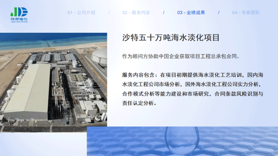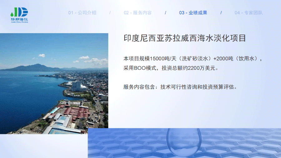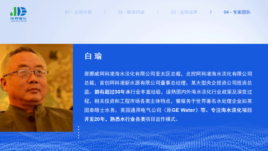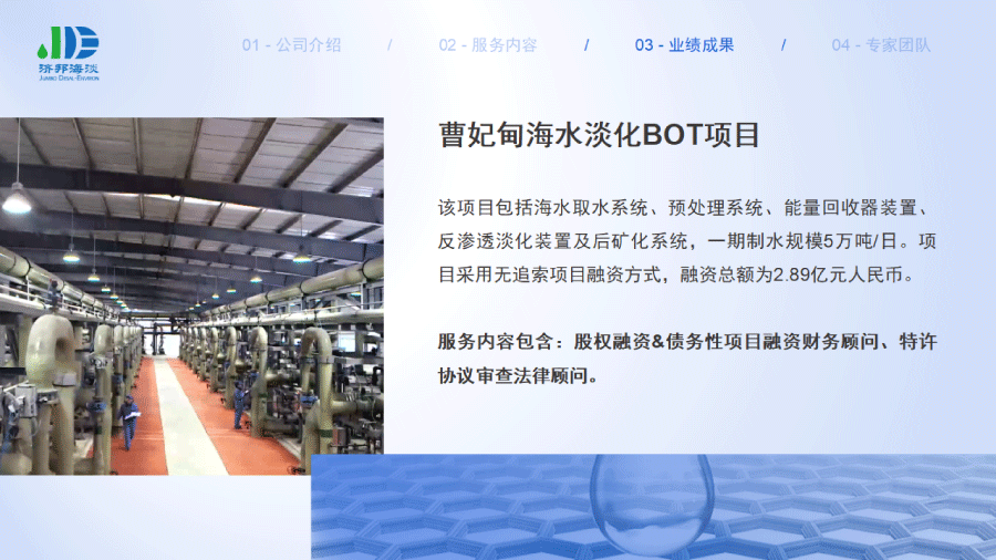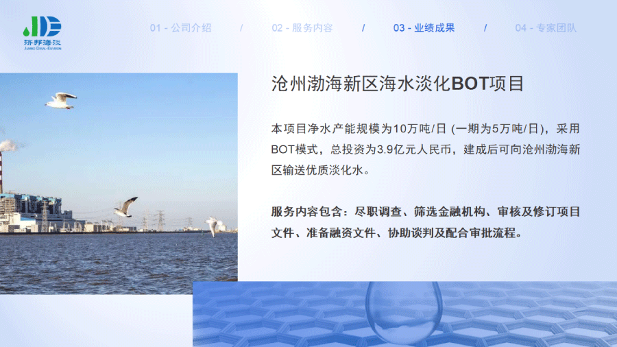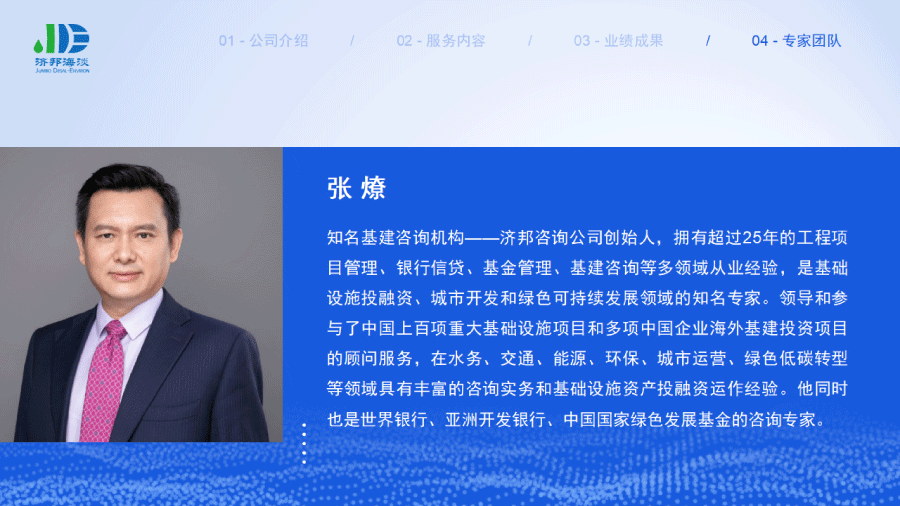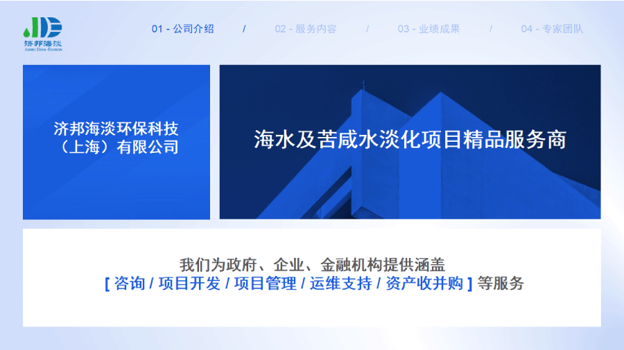 企業(yè)簡介 組織架構(gòu) 子公司 - 濟(jì)邦國際有限公司 子公司 - 濟(jì)邦海淡環(huán)保科技(上海)有限公司 里程碑事件 分支網(wǎng)絡(luò) 服務(wù)行業(yè) 專業(yè)團(tuán)隊(duì) 九大業(yè)務(wù)領(lǐng)域 項(xiàng)目業(yè)績 出版叢書 行業(yè)影響
